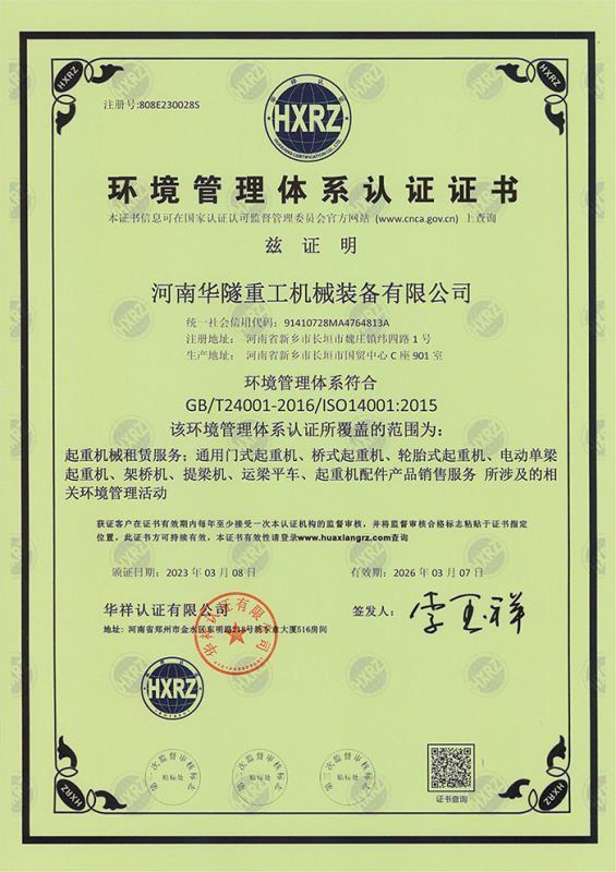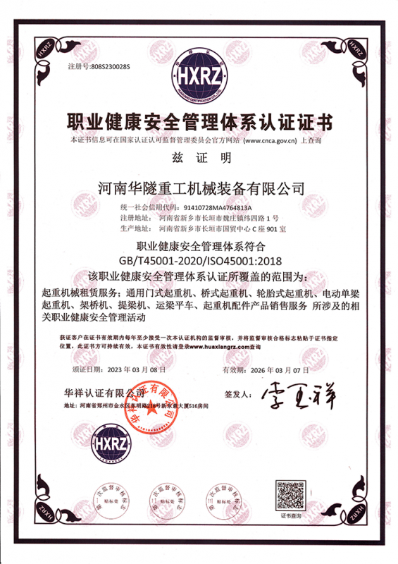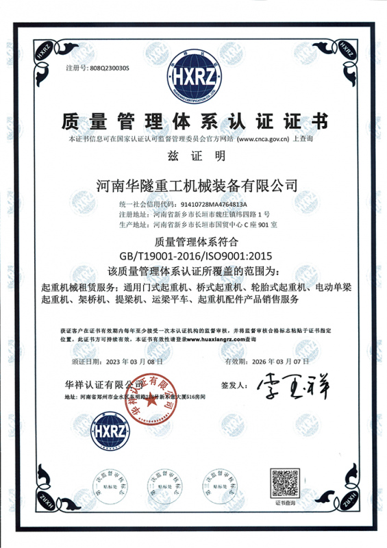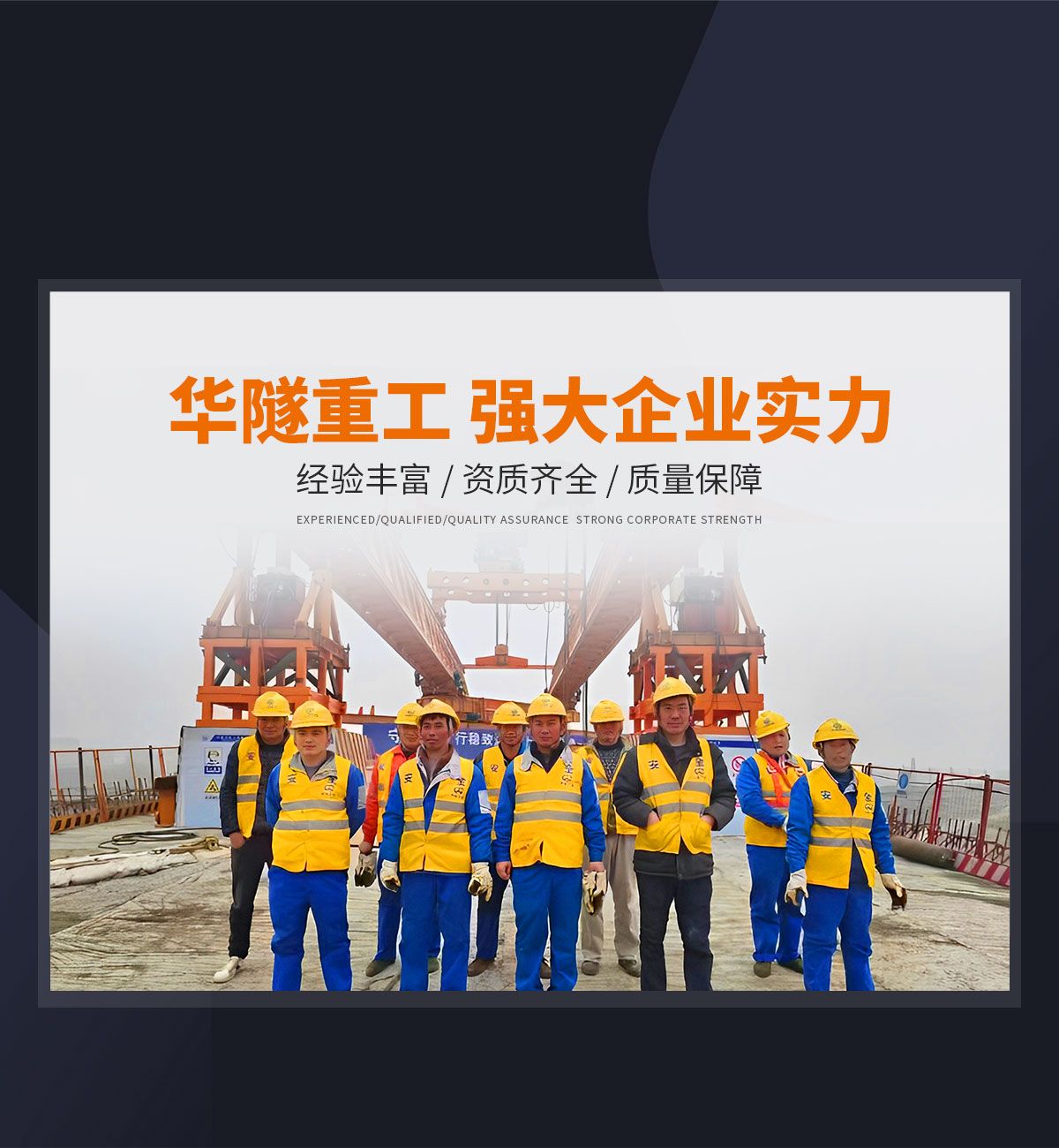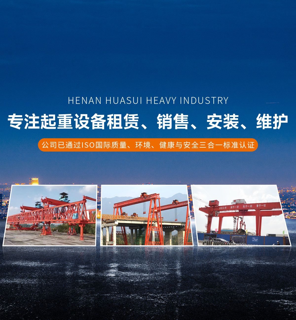 河南華隧重工機械裝備有限公司主要從事通用門式起重機、橋式起重機、電動單梁起重機,輪胎式起重機、架橋機、提梁機、遠梁平車、鋼絲繩電動萌蘆、卷揚機、起重配件制造、銷售:起重機械租賃、安裝和維修,起重設(shè)備園收,機械設(shè)備維修,鋼結(jié)構(gòu)工程承包,橋梁工程及技術(shù)咨淘服務(wù),銷售五金制品、機電設(shè)備:建設(shè)工程監(jiān)理,建設(shè)工程設(shè)計,各類工程建設(shè)活動,建筑勞務(wù)分包,建筑物折除作業(yè),施工作業(yè),工程管理服務(wù),土石方工程施工,裝如發(fā)運。  公司已通過IS0國際質(zhì)量、環(huán)境、健康與安全三合一標(biāo)準(zhǔn)認證,特種設(shè)備制造許可證和特種設(shè)備安裝改造維修許可證。擁有完熟的質(zhì)量管理體系。嚴(yán)格的管理制度,強大的生產(chǎn)能力和先進的檢測手段,在保證產(chǎn)品質(zhì)量的同時,也具備了極強的市場競爭力。  公司堅持科技創(chuàng)新為理念,產(chǎn)品質(zhì)量為核心,注重信譽,建立了減信可靠、快捷、思速。便利周到的售后服務(wù)網(wǎng)絡(luò)。  我們擁有的技術(shù)專家和技術(shù)服務(wù)隊伍為客戶提供充善的售前技術(shù)支持和全天候的售后服務(wù)體系,讓您無后顧之憂,享受一站式的超值服務(wù)。  “華隧重工,伴您成功“是華隧重工永遠的宗指,真被的希望與各界朋友攜手并進。共創(chuàng)輝準(zhǔn)!